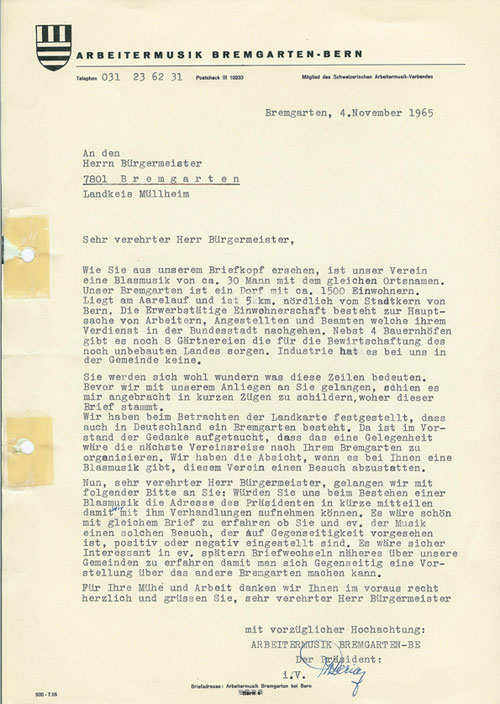 Willy Deriaz die Vereinsführung der Arbeitermusik an